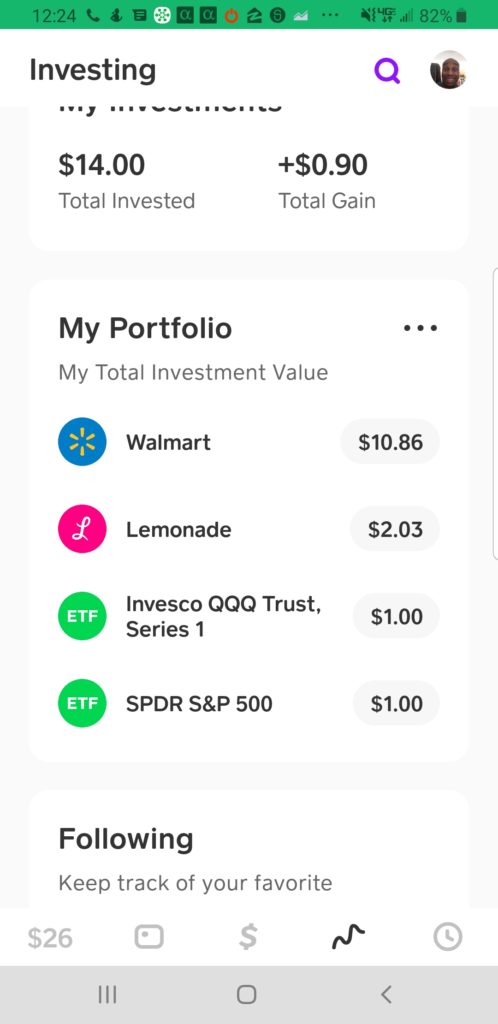 I have $14 in total invested. I have total S&P 500 ETF, a total NASDAQ ETF, Lemonade (insurance agency that just became public), and of course Walmart. I go always go to Walmart, may as well get some of their profits via dividends. You will be surprised how fast money grows! Until the next update.