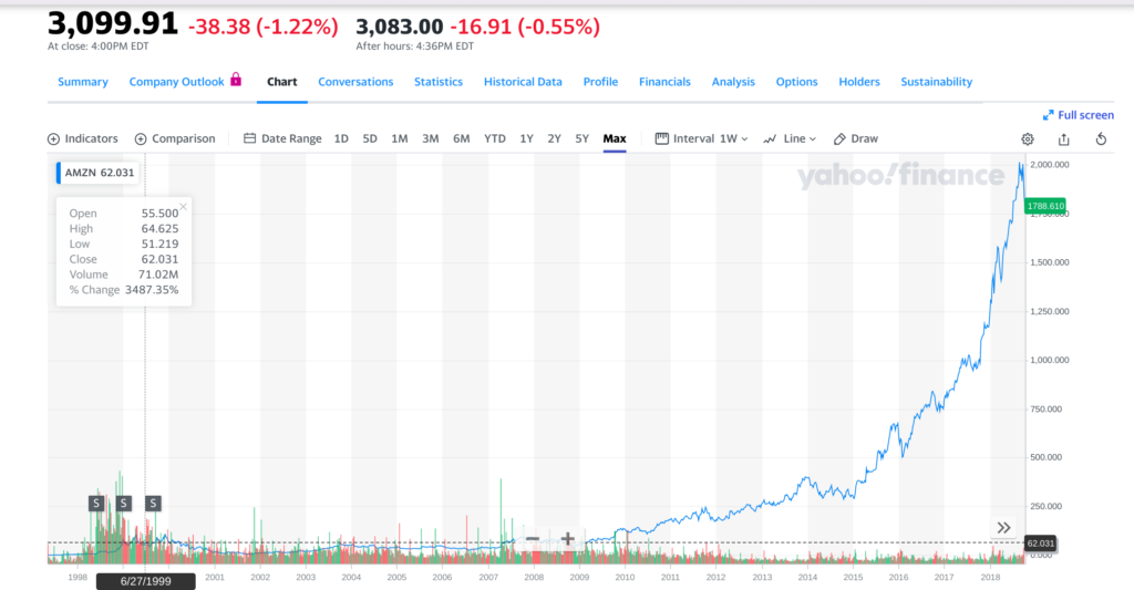 Growth Investing: This method is also called capital appreciation. Here the goal is to invest in a stock and let the price multiply in value from there. For example, if I would have invested in Amazon (AMAZ) the day I came into boot camp, it would have cost me $62. Today is worth $3099. I did not get paid any dividends. For retirement under the growth method, I would sell shares of my stocks in order to pay bills and live off of.