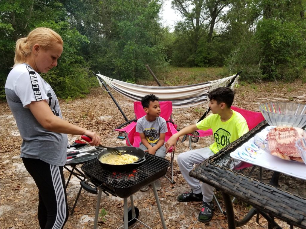 Camping in our backyard in Florida, 2020.