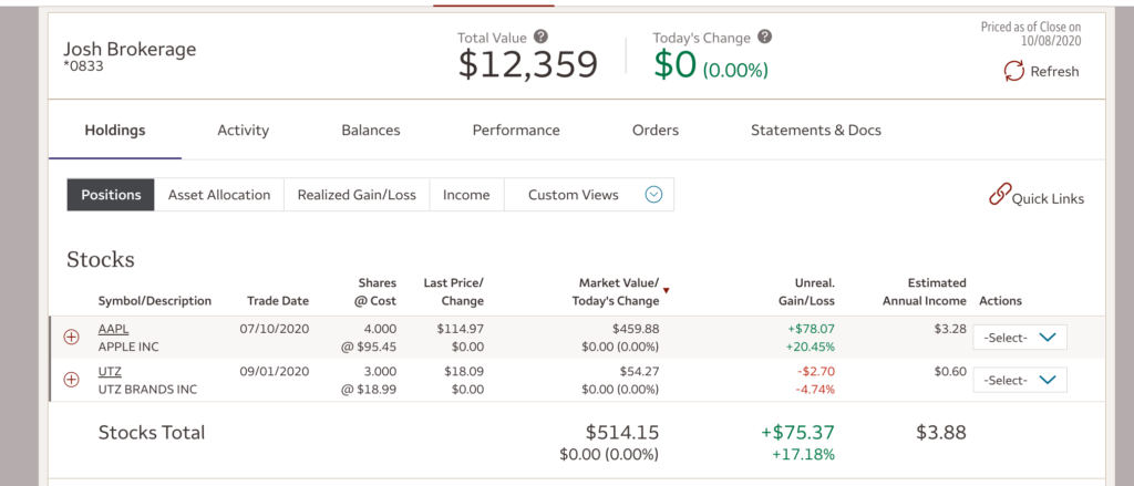 My Wells Fargo was how I started out in stock investing. I do not really care for it so much nowadays, mainly because you cannot do fractional investing. Fractional investing is where you can buy fractional shares of 1 complete share. For example, I can buy $1 of a $200 share of a company. I am going to stop investing in Wells Fargo until the rest of my brokerage accounts get over $10,000.