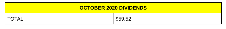 Let’s see what dividends we were paid in October 2020. My goal is to get to $1 Million which would yield roughly $40,000 a year of dividend income. Looking at numbers is boring to some, but to the dividend investors, these are super exciting. Hopefully, you begin to enjoy looking at these numbers and start to build your own dividend portfolio.