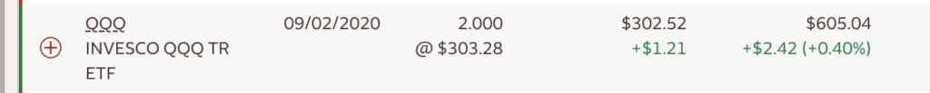 Index funds track their respective indexes. But what does that mean? This means that if the underlying index has a good day, then the index fund will have a very similar day as well. In the example below, for the closing of December 10, 2020, the Nasdaq finished up about 66 points or about +0.54%. Then, if you look at its index fund (QQQ) in my portfolio, it rose $1.21 for each one of my shares.