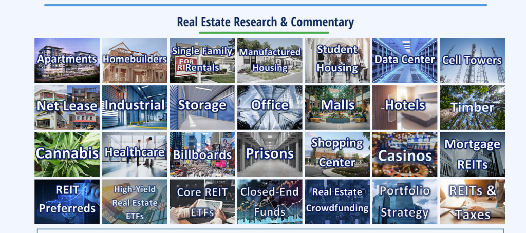 REITs are a very broad category that needs to be researched thoroughly. I jumped in without knowing my head from my rear end. During the pandemic, I learned a lot. I usually like to jump in head first, and then learn from there. That is me. I highly recommend investing some time with Hoya Capital. They have everything you need to know about REITs. Subscribe to their newsletter.