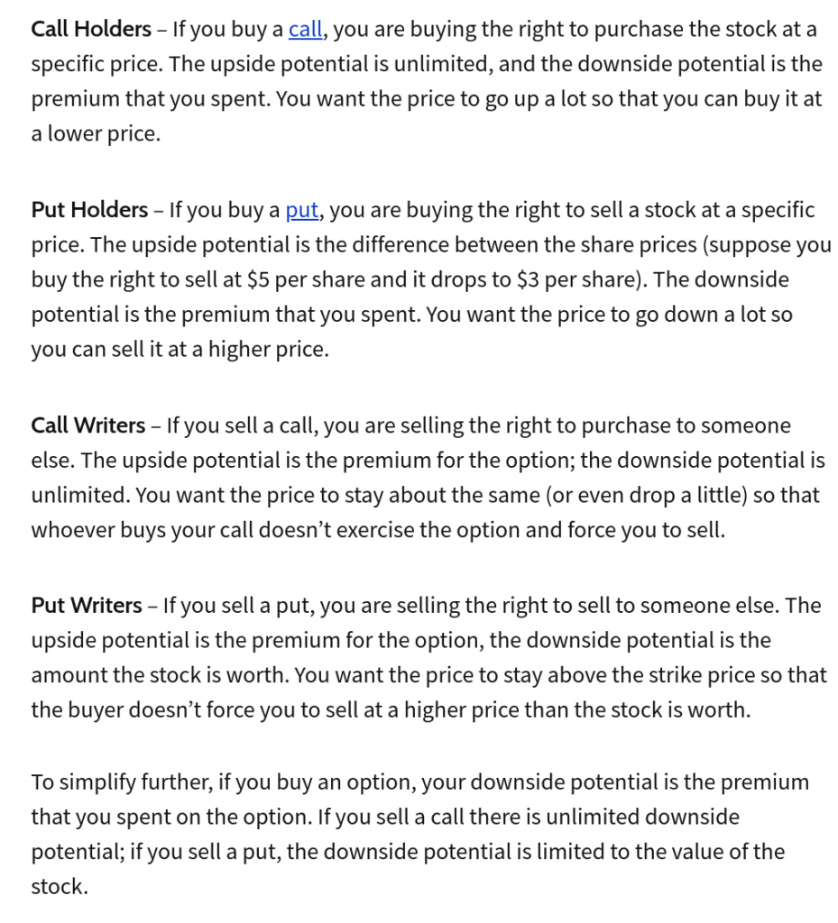 Options are contracts giving the owner the right to buy or sell an asset at a fixed price for a specific time. The fixed price is called the strike price. I will go more in-depth into the vocabulary of the options market in other articles.