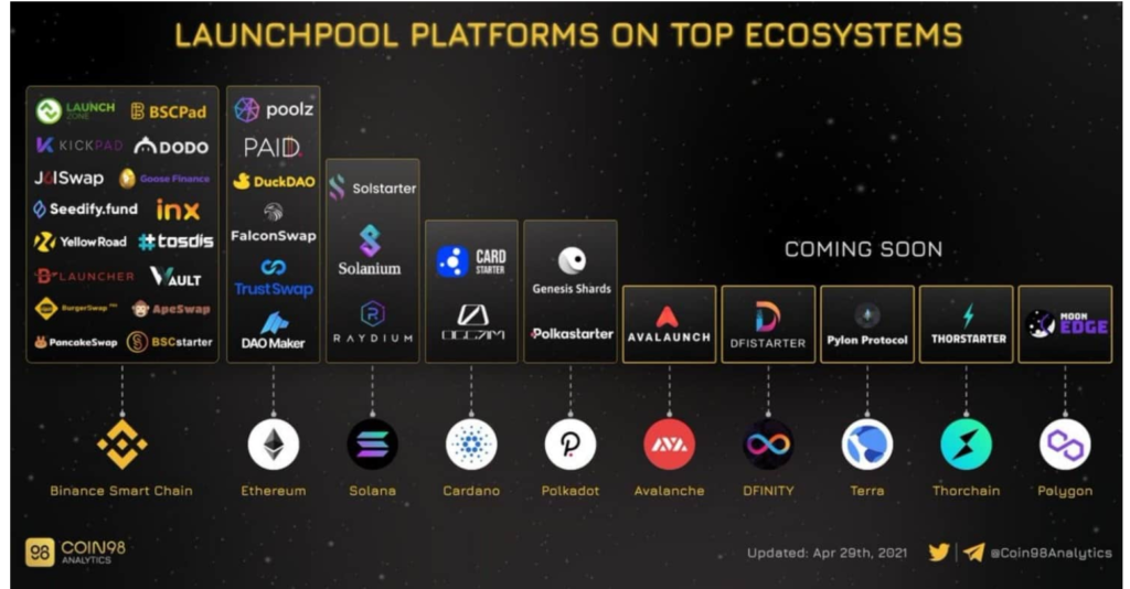 Launchpool coins. The infographic also gives us an insight into launchpool coins. A launchpool helps new coins come to fruition. Buying a coin at launch is a great way to jump into the investment arena for the coins. Remember, from my article “Becoming a Bonafide Investor: Investing Insider vs. Outsider,” buying at IPO or ICO will make you an investing outsider. You are not going to get out-sized gains by buying at the start.