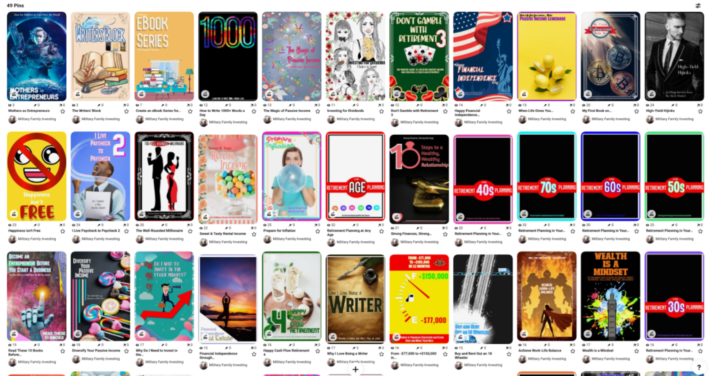 You don’t know your actual income stream. Above is a screenshot of some of the articles I have released on my blog. I upload the designs and links to my Pinterest to keep tabs on how I am doing. Look how much content this adds up to be, and this is only looking back two months.