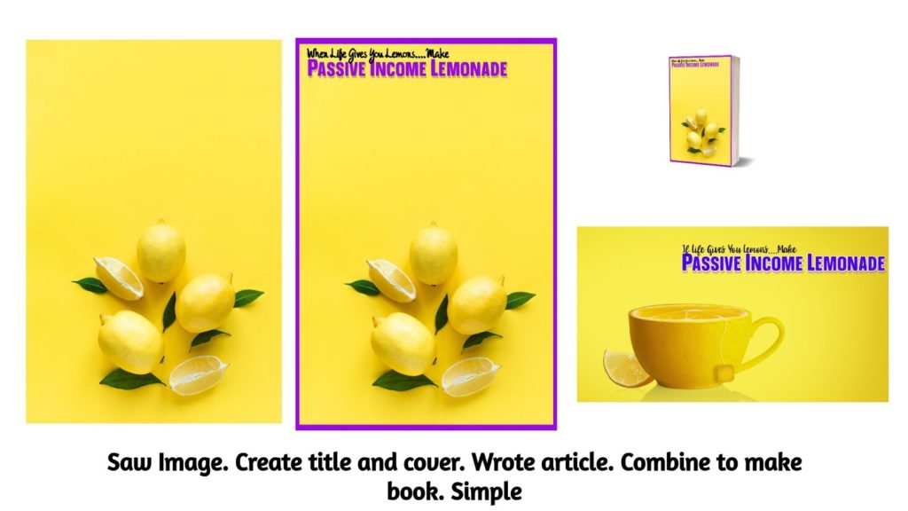 You should also have a list of article topics that you have been building through your readings. Once you become a writer, you will craft a story from images, articles, news, books, videos, and conversations. Case in point, I saw a stunning picture on my image website. It was a picture of lemons. I took the picture, made the cover for the book, gave it a title, then wrote a couple of articles on the topics. I combined it with some older posts, and tada, I formed a book!