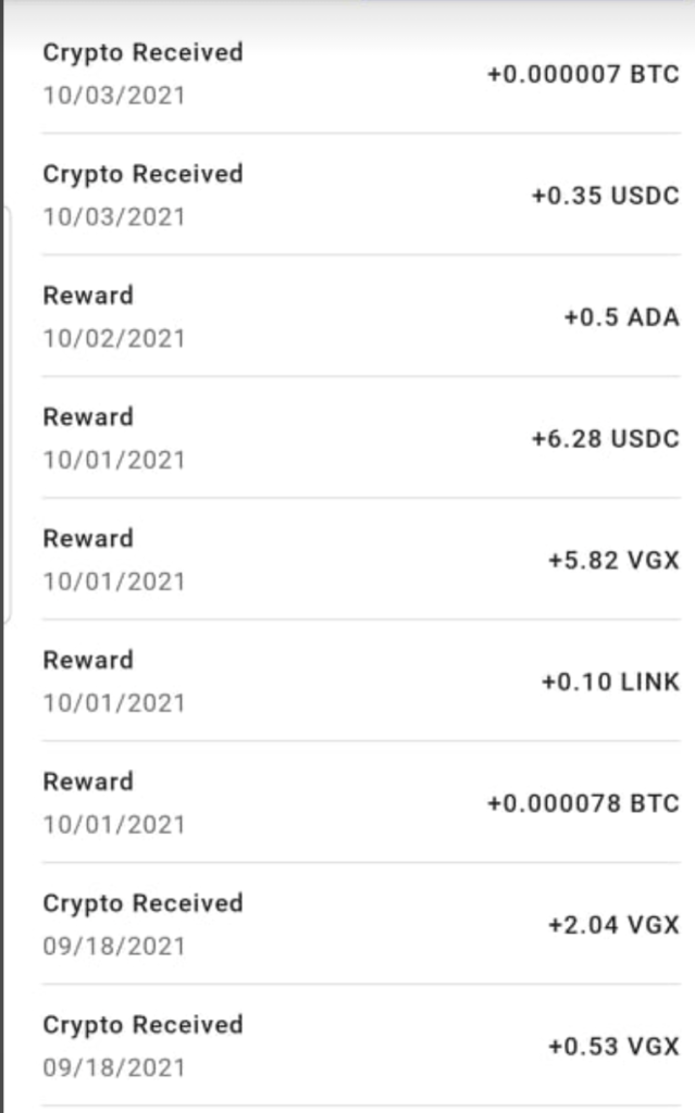 Here is how all of these crypto rewards look on my transaction history. When you see all of these transactions, it’ll blow your mind. All I can say is PASSIVE INCOME!