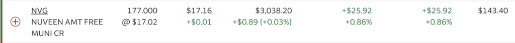 Municipal Bonds. Municipal bonds (munis) also gave us tax-free distributions. So, finding some good tax-free muni closed-end funds early is a must. I have Nuveen Municipal Bond Fund (NVG) in my portfolio. I currently have $3,000 in my muni bond fund, giving me $12/month tax-free. I will want to get that amount to $500/month over the next 20 years if I retire in California.