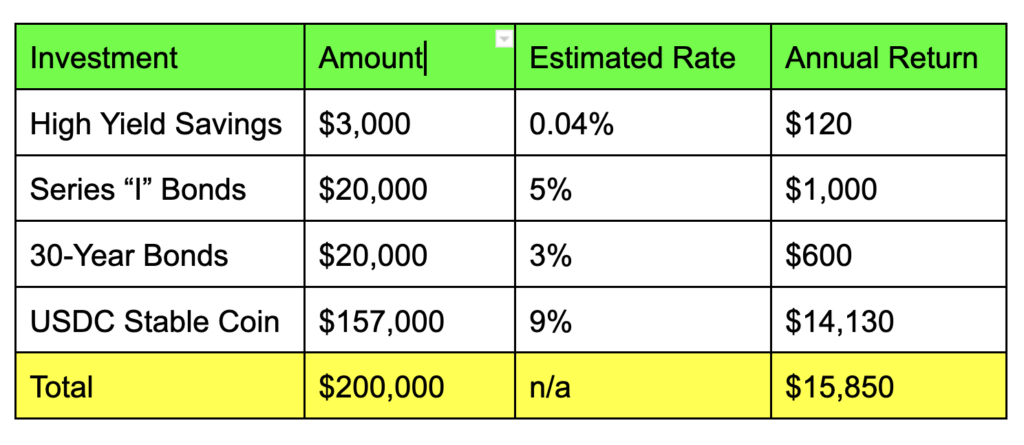I will compare Savings “I” Bonds, Treasuries (30-year Bonds), and USDC to see which is the best place to park your money for the long run. Also, I will run a scenario on how I would invest $200,000 total across these three accounts. Let’s proceed with our comparison.