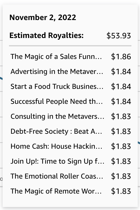 I recently had a great day in book sales, where I made $53. Each type of passive income takes an extreme level of work to achieve. However, you should funnel the proceeds toward your dividends portfolio.