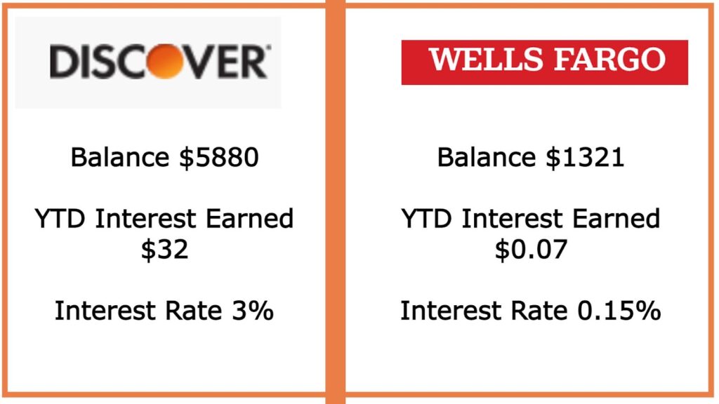 Look at the difference between my Discover HYSA and my standard savings account at Wells Fargo. The HYSA receives 20 times more interest than the standard account.