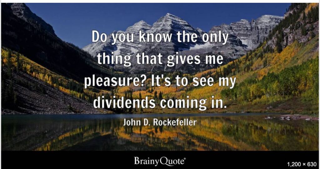 I will leave you with a quote from John D. Rockefeller. “Do you know the only thing that gives me pleasure? It’s to see my dividends coming in.” I agree (except my family also gives me pleasure). Good Luck!