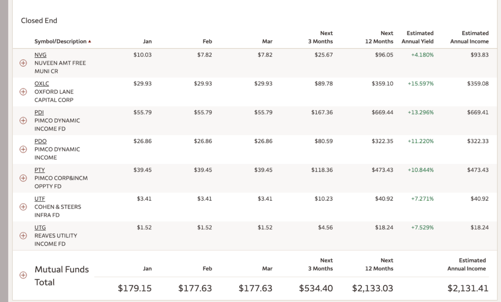 With the Wells Fargo income calendar, you can see exactly your monthly dividend numbers. It helps to right-size your monthly totals.