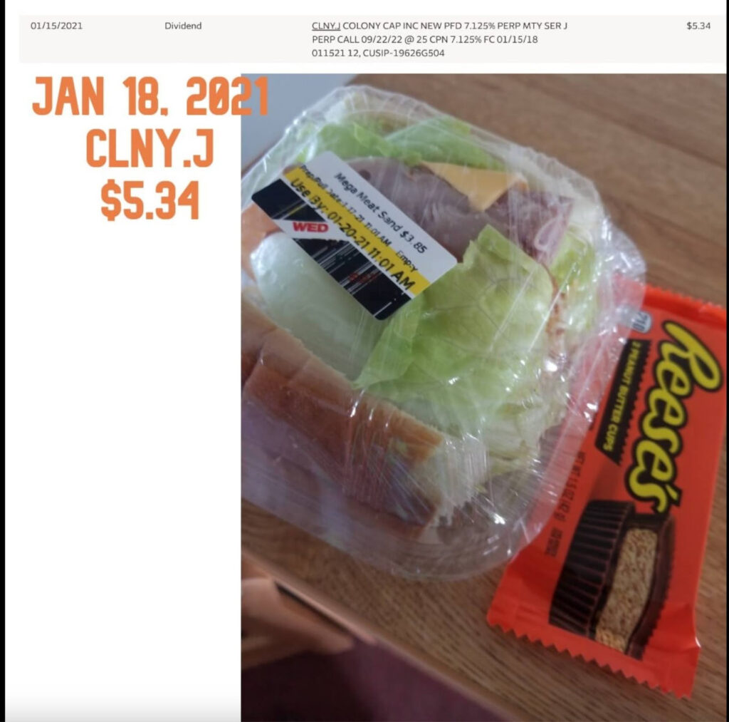 Conclusion. I remember receiving a massive $5 dividend one day in January 2021. I went to the quickie mart on base in Okinawa, Japan, and bought a sandwich for under $5.