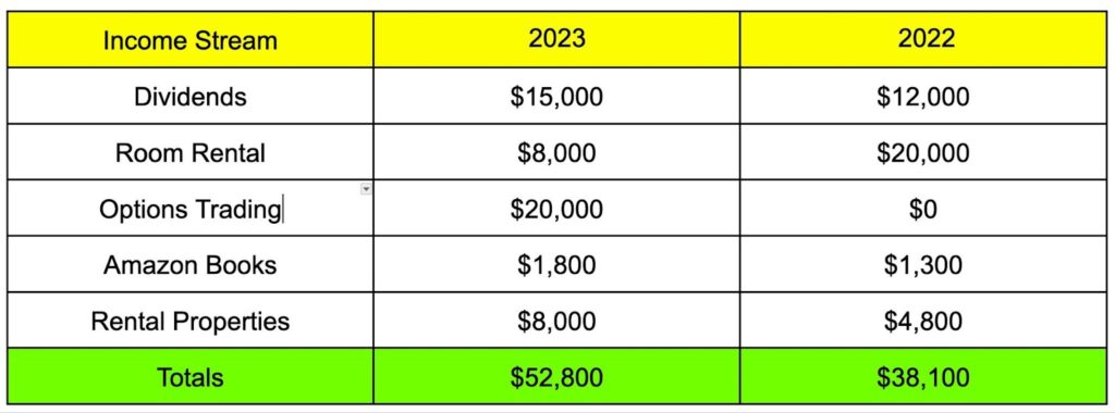 Our 2023 income streams. Let’s take a quick look at how my streams fared this year. These are estimates because December hasn’t closed out yet.