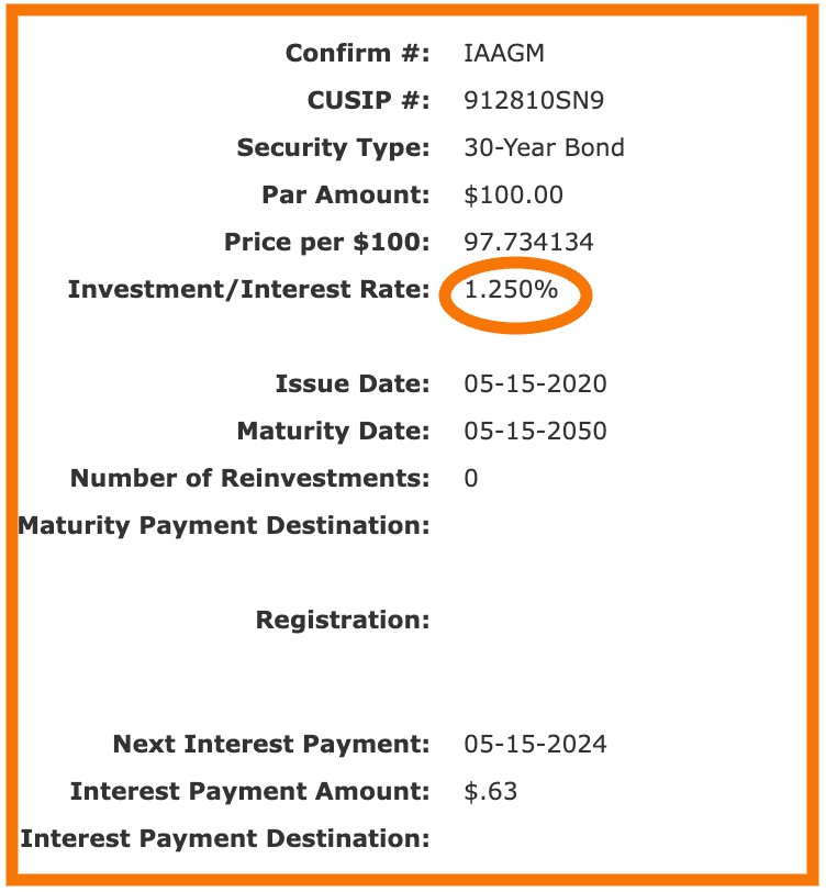 I love me some 30-year Treasury Bonds, but the ones I bought in May 2020 are worthless. Their interest rate is 1.250%, which is just pathetic. These particular bonds did not survive the inflationary spiral in 2022 and 2023.