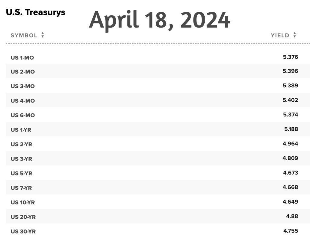 Yields on short-term Treasury Bills and Notes can be higher than the 30-year in what we call an inverted yield curve. However, there is no guarantee that your 5.3% one-month Treasury BIll will reset at such a high rate.